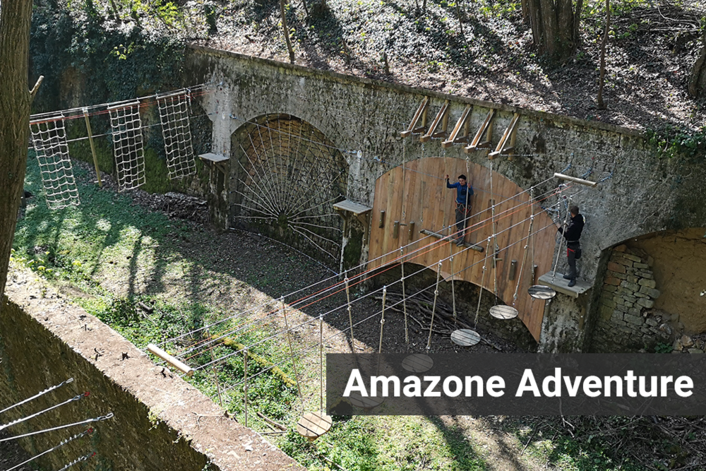 Since the opening of the Vanciaventure adventure park in 2015, Amazone Adventure has supported the Fort de Vancia team in the creation, development, and maintenance of their rope course. Located within a historic military site, the park takes advantage of a unique environment made of ramparts, moats, and fortifications.