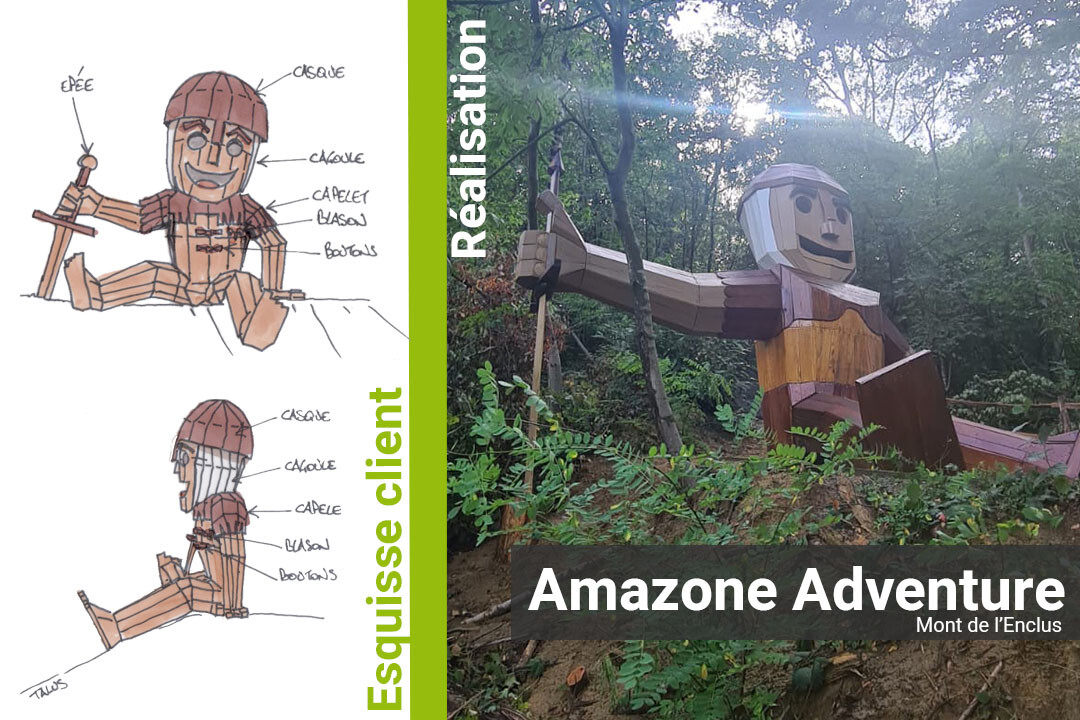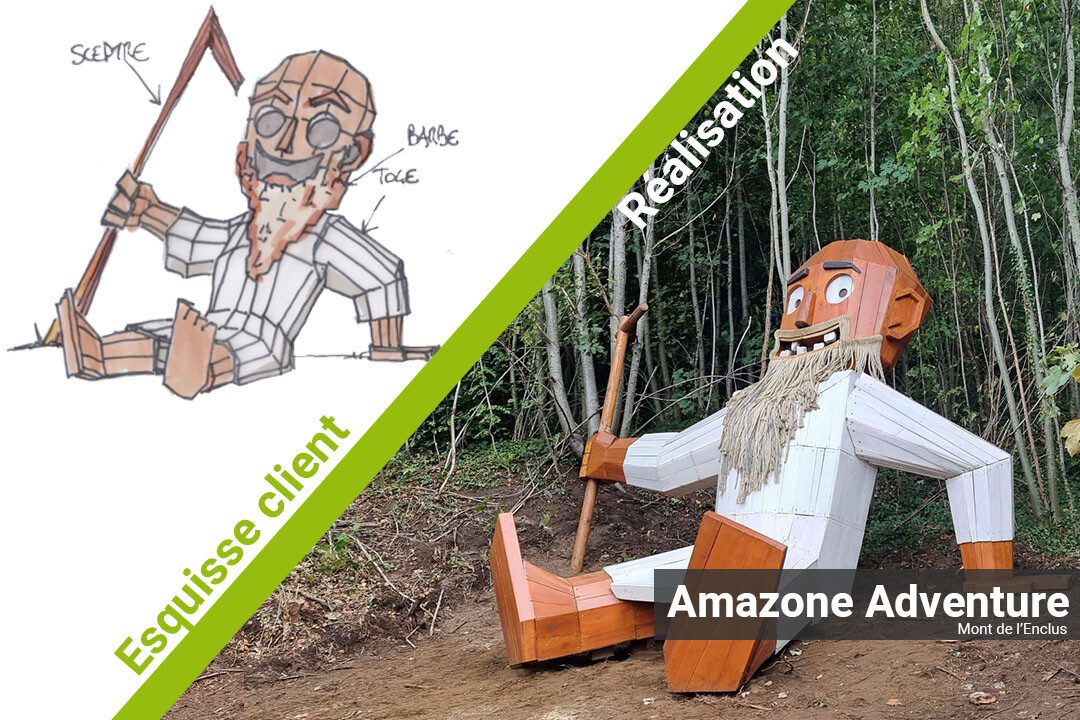 Six wooden giants were designed and installed by Amazone Adventure, two of which are interactive. Development projects are currently underway.
