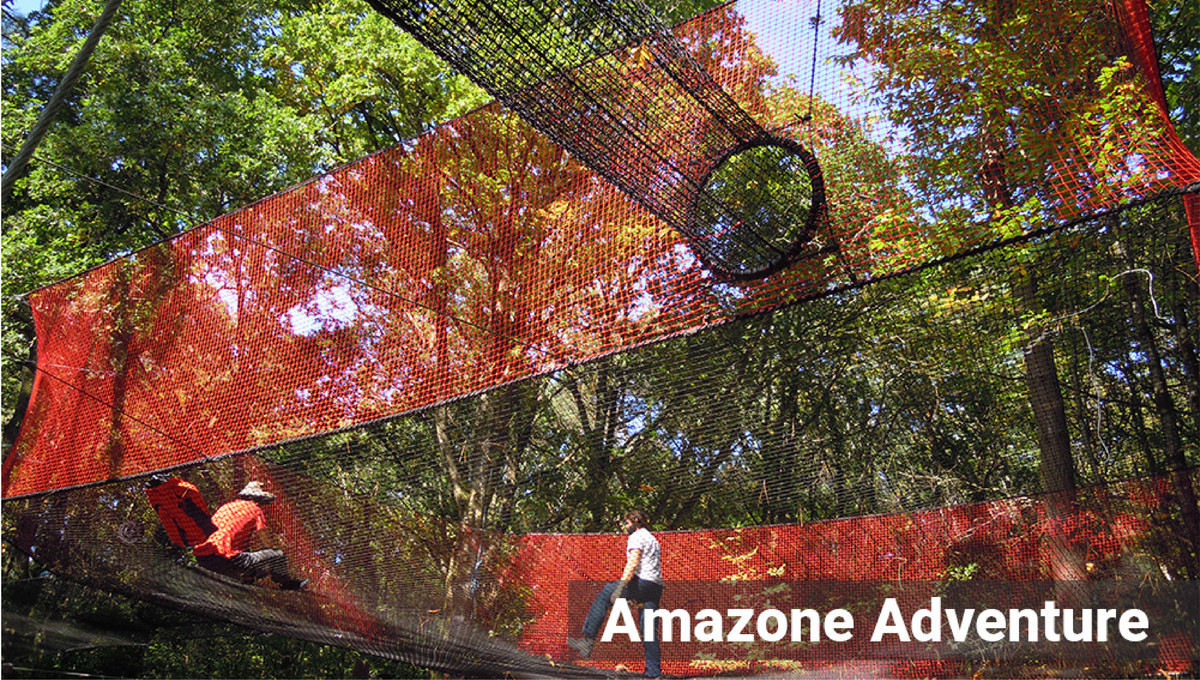 Las redes, las redes de trampolín o incluso los mares de redes son redes gigantes que se extienden entre los árboles. Ya sea vinculados o no, ofrecen un espacio de juegos innovador y muy atractivo.