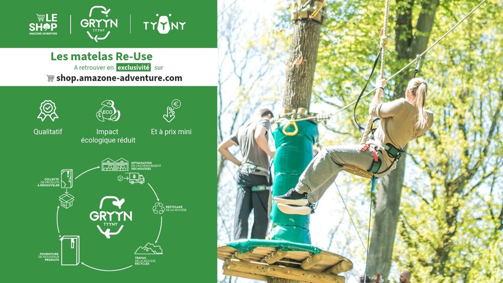 Chez Amazone Adventure, l’innovation rime avec responsabilité. En partenariat avec TYYNY, nous avons développé la première gamme de matelas de protection pour parcs aventure issus d’une véritable économie circulaire.