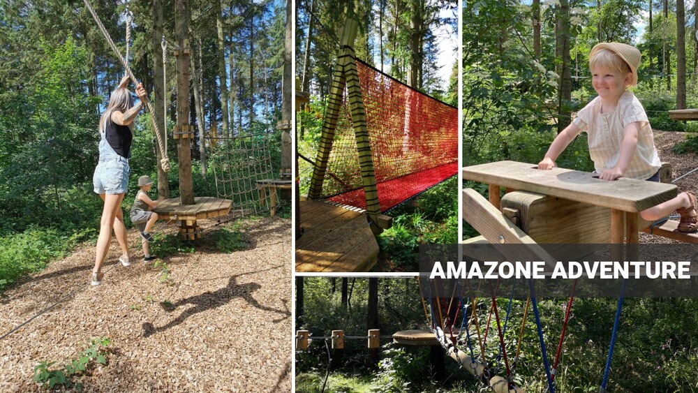 C’est un immense terrain de jeu forestier, couvrant une superficie équivalente à plus de 40 terrains de football, où petits et grands peuvent explorer, grimper, glisser, sauter et s’amuser dans un cadre naturel sécurisé.